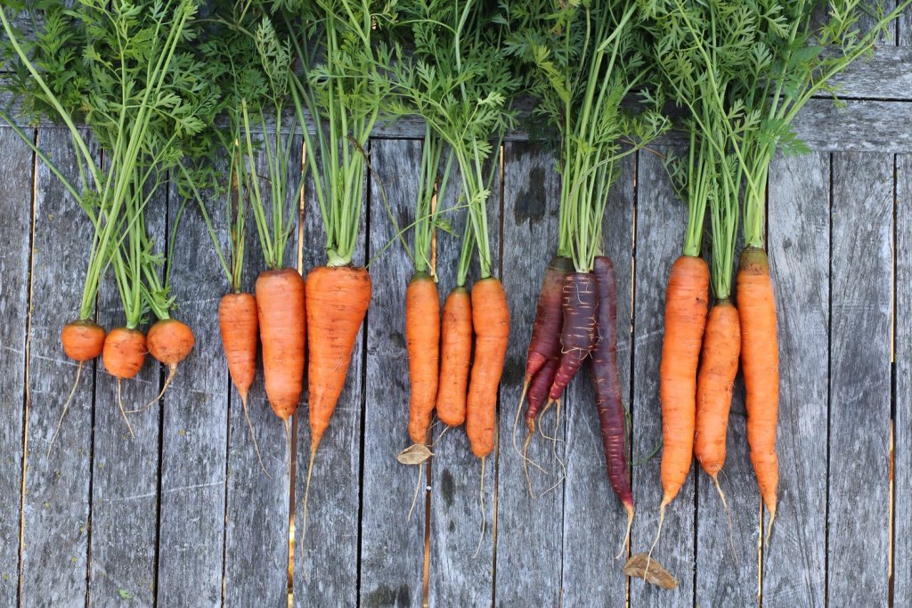 We’ve tried pink carrots and other purple varieties, but we really love the extra sweetness orange carrots provide. Interestingly, orange carrots are highest in Vitamin A, more so than any other carrot color, making them the most nutrient dense carrot.