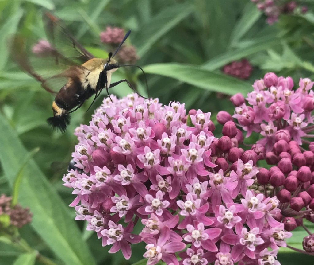 In addition to loving monarchs, this amazing moth is one of my other favorite insects to attract to my garden. I was delighted last summer to see one here in our new very small prairie remnant. Seen here the hummingbird clearwing moth is filling up on the rose (swamp) milkweed nectar. This milkweed is a fast and prolific spreader, so if that’s a concern, I’d use caution in planting it in your yard. We let it do it’s thing with wild abandon here. And we are thanked with visitors as graceful as this one. It’s worth it.