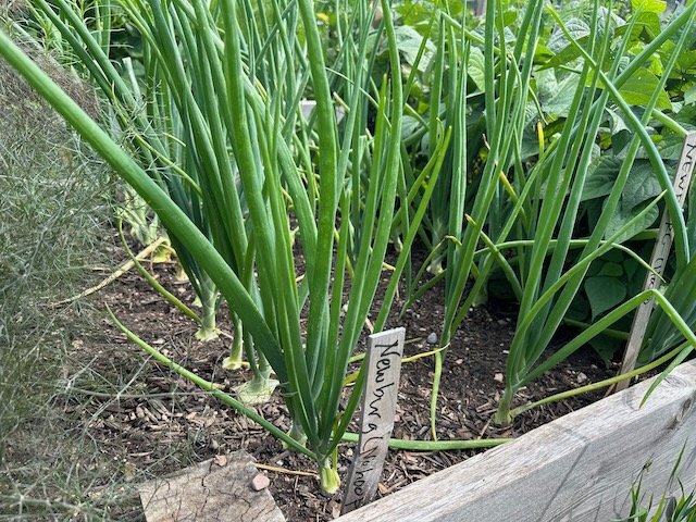 So far, the uncovered and covered onions seem to growing at about a similar rate; I don’t see a large size difference, but they are about a month behind. It will be interesting to see if they store longer, as they won’t be harvested until later in August, or if their storage time is about the same as the ones that are harvested sooner.