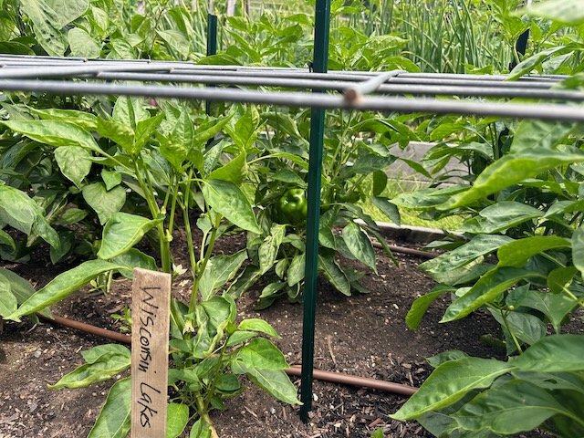 On a whim, I decided to start more bell peppers in April, April 11 to be exact. This is the latest I’ve ever sowed bell peppers indoors. Then, about 2 weeks later, on April 24, I direct seeded the same variety, Wisconsin Lakes, in our cold frame. The direct-seeded cold frame pepper germinated in about 2 weeks in the cold frame, which honestly was pretty good. I transplanted it into the pepper bed in late May, and it was a tiny seedling at that time. It has been slowly gaining height on the indoor sown seedlings. Currently, the direct seeded plant has open flowers while the indoor sown plants have fruit set already.