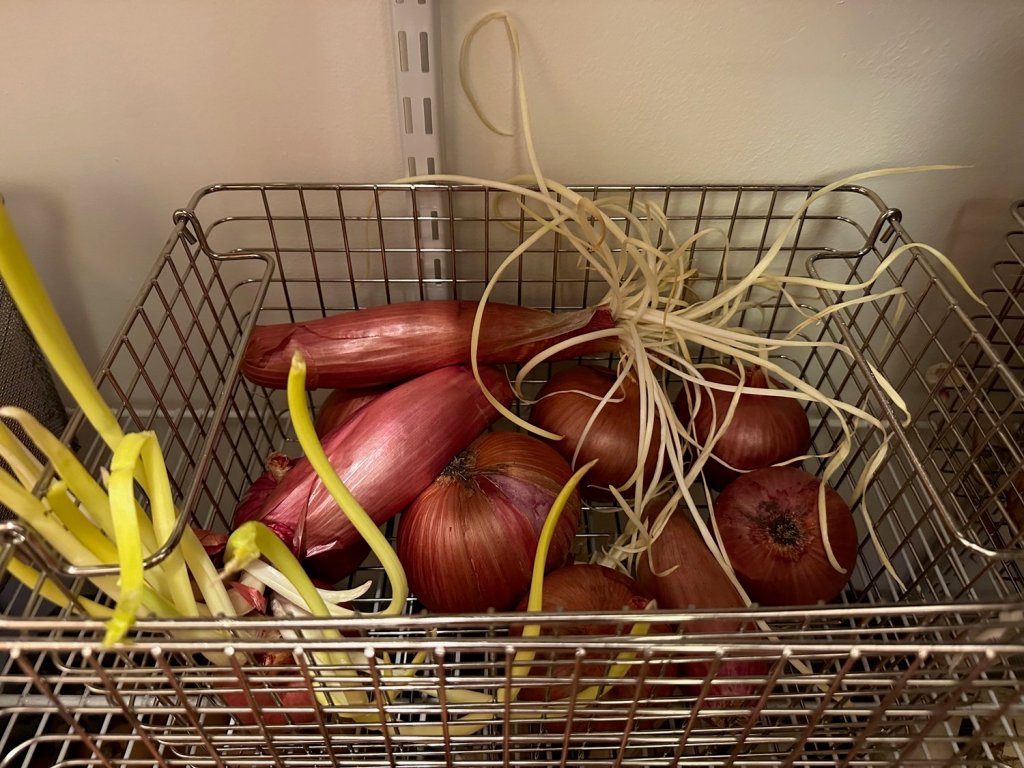 With onions, garlic, and winter squash, keep an eye on them, and hunt around for produce that’s starting to go bad. How many times have you bought a bag of onions and more than one has already started rotting?! For me, it’s every time, even when I carefully inspect the bag. This rot will naturally start to happen in late winter/early spring for us, so sometimes I move some of them into the fridge, but not until we’re nearing the end of storage season.