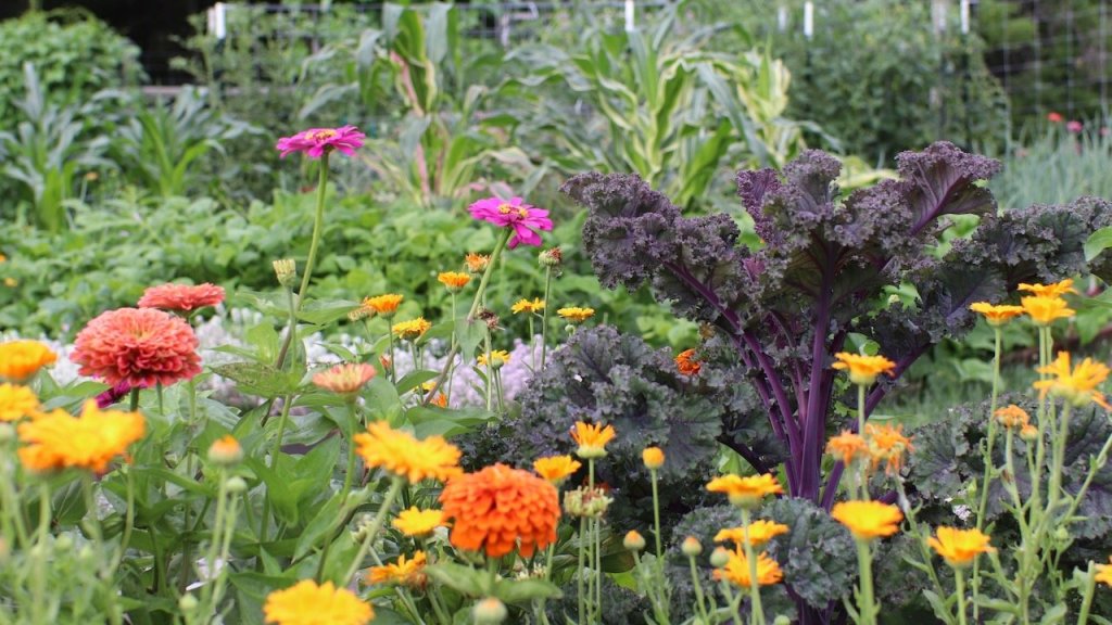 You’ll notice on my downloadable guide that I didn’t put strawflower, dahlia, or globe amaranth with any other vegetables. These are larger flowers and as such I plant them in the garden but in flower beds. Sunflowers and zinnia have very specific interplanting criteria for me: sunflowers go with tomatoes, though I increase my spacing to allow their cohabitation, and zinnia get interplanted with my scarlet kale in one of my flower beds, so it’s more like the kale in interplanted with flowers than the other way around.