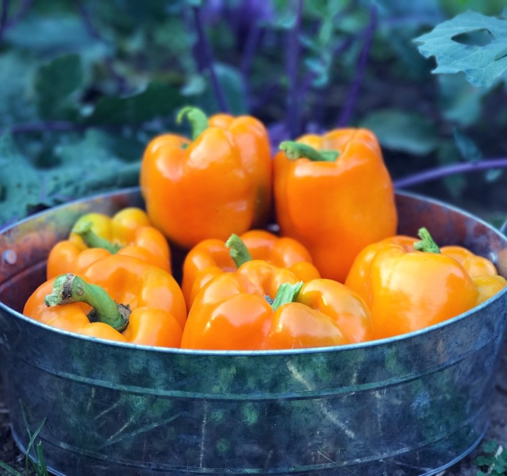 We’ve been growing Gourmet bell peppers since sometime in the ‘00s. It’s a thick-walled orange bell and as the years have passed, our pepper quality has definitely improved. If you’re new to growing peppers, keep at it. I find they are the hardest veggie to grow for me here, but they are so worth it. By and large, I only grow hybrid bell peppers but lean more toward open-pollinated for other pepper types.