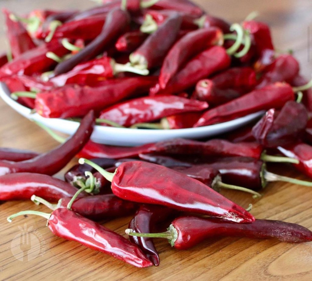 We dry our hot peppers whole, then they go into plastic storage bags usually with food-grade desiccant packs. These are Gochu’s.