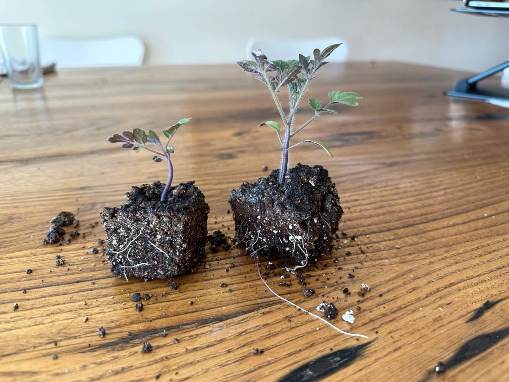 Right: Pittmoss (1:1 replacement for peat) in soil blocks