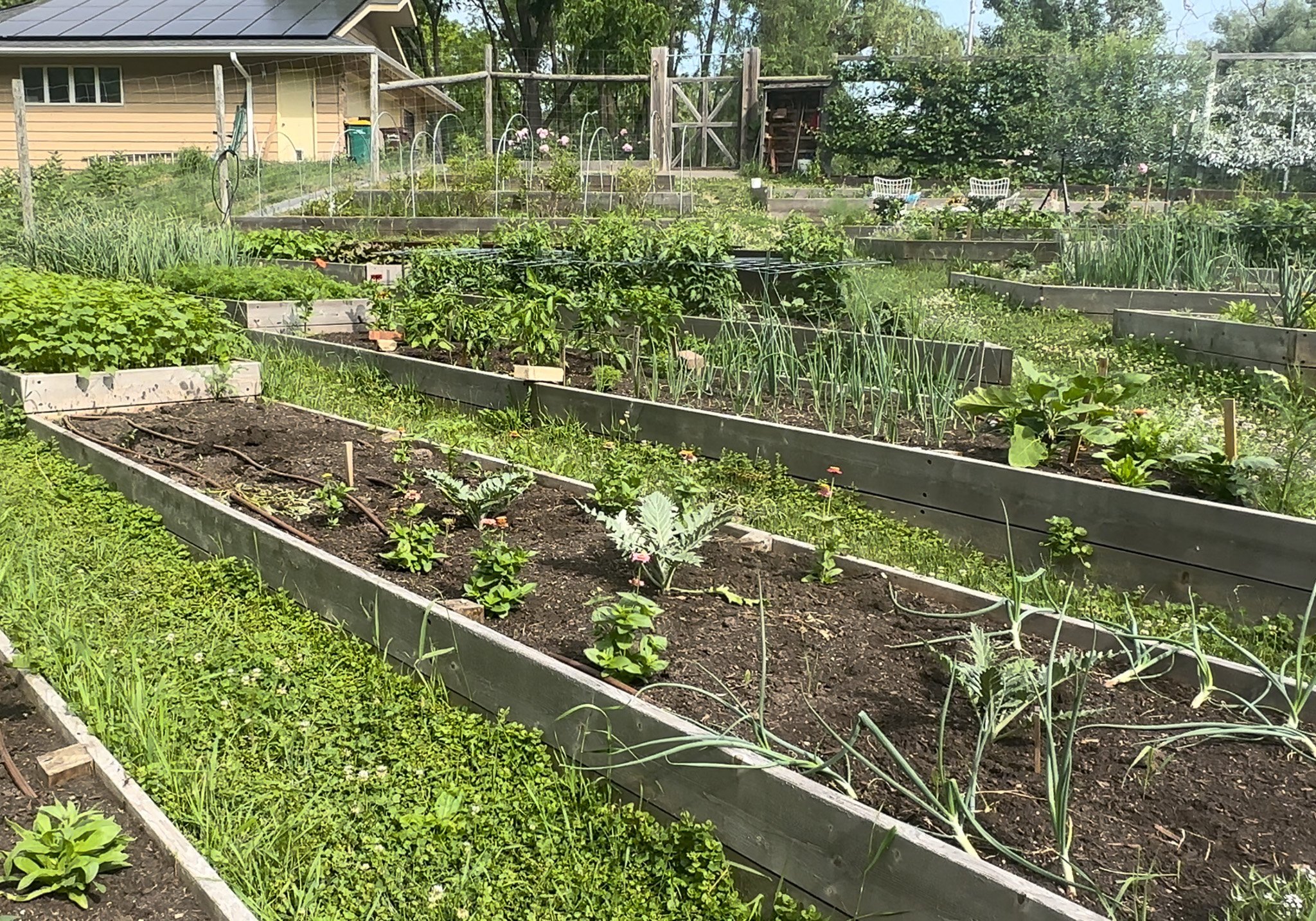 How it actually grew out … while the intended dominant plant, the artichokes, still clung to the center of the bed and did in fact grow taller, the zinnias were actually the dominant planting here by square footage. And while it could have gone terribly wrong, it worked out, luckily.