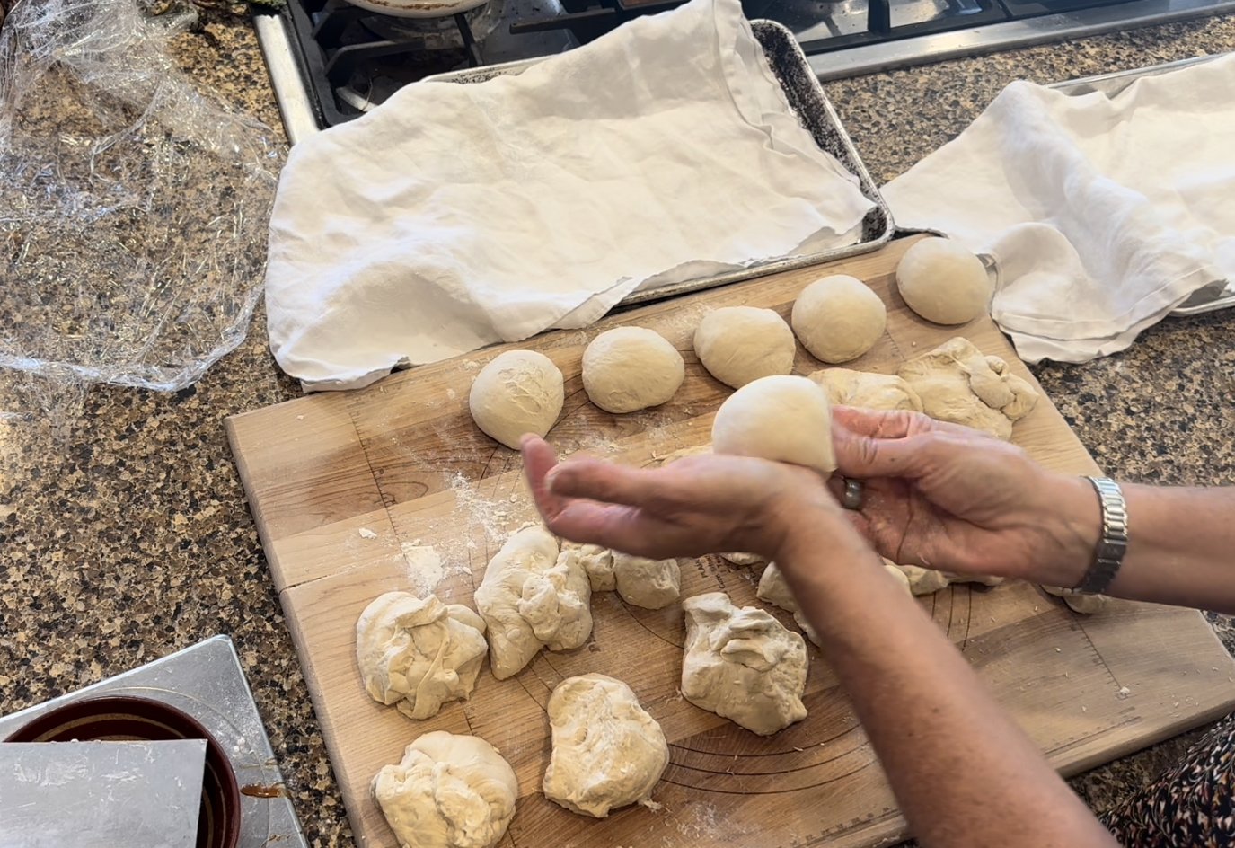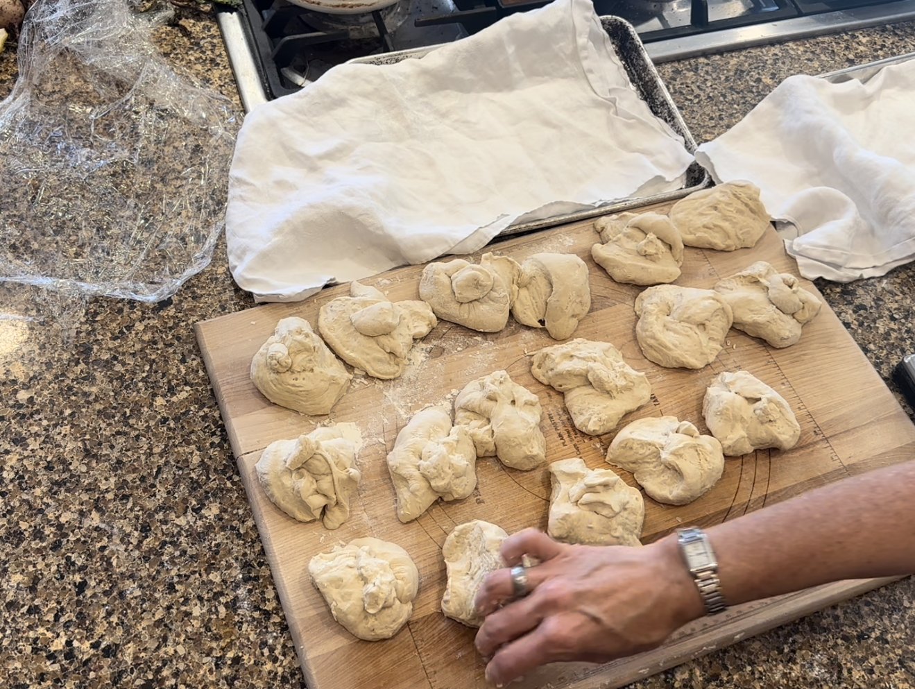 - Repeat stretching 2 more times, stretching once an hour around 1pm and 2pm, and then at 3pm it’s time to shape the bagels!
